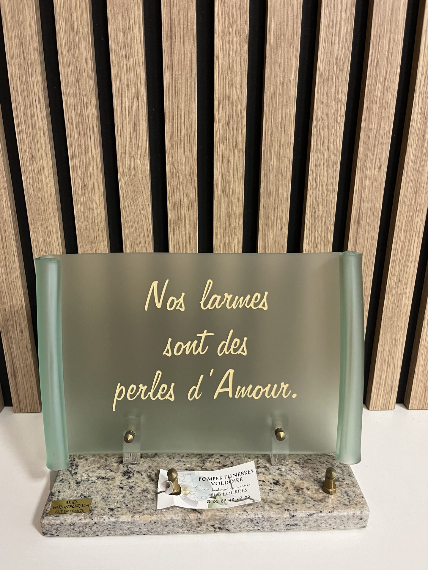 Les pompes Funèbres, Voldoire funéraires proposent dans nos magasins un large choix de plaques fenéraires. Situés à Lourdes et Arcizac, nous serons vous accompagnés dans vos démarches.